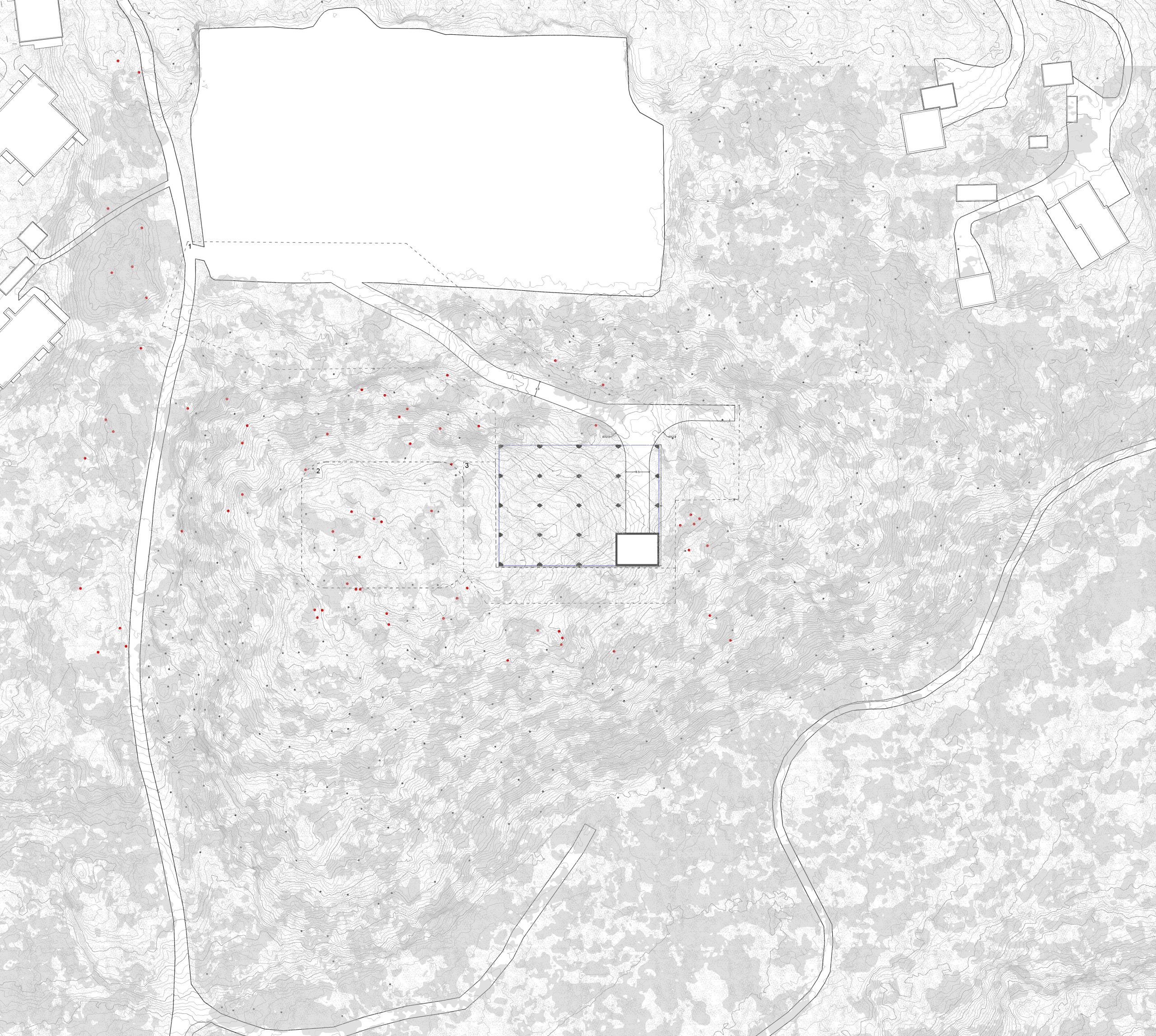 Gläntan utformas i samklang med omgivande natur och ordnar funktionerna vertikalt för minsta möjliga fotavtryck. I pelarnas förgrening vilar cisterner dolda i konstruktionen och deras laster tas upp av pelarnas gracila stammar. Pelarna kan hållas slanka då de inte behöver ta sidolaster utan endast bära vattnet.